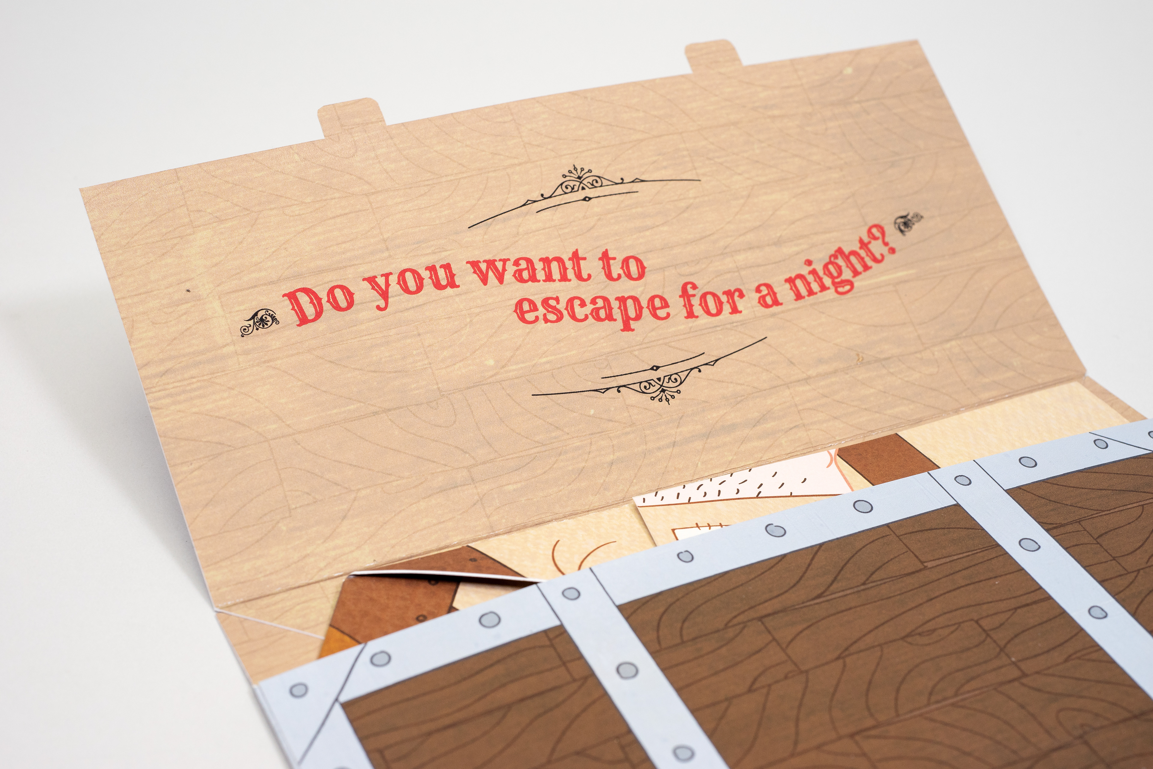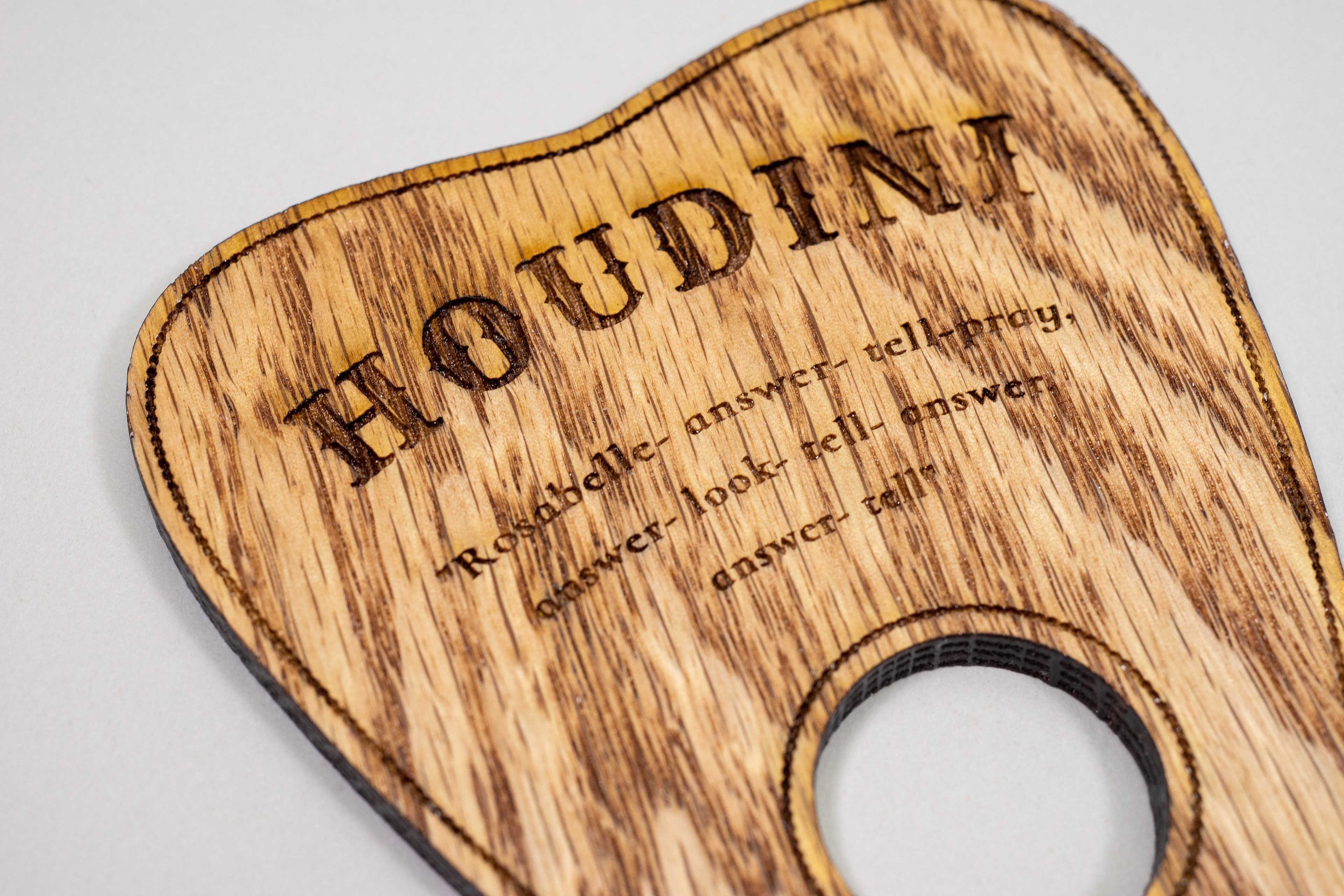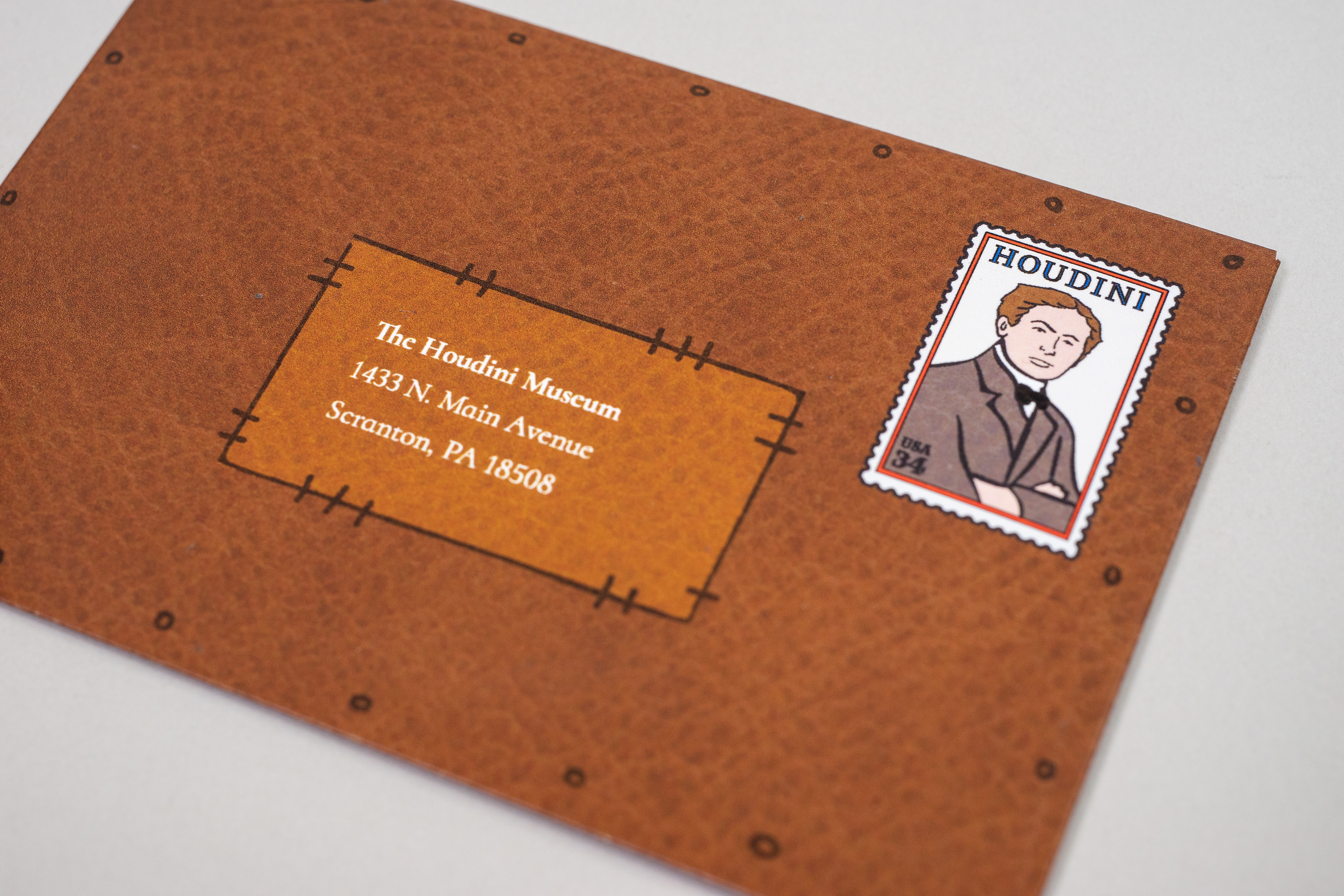 A special invitation for a special occasion. This project is a promotional piece that celebrates the life of famous escape artist Harry Houdini with the event held by the International Brotherhood of Magicians on the anniversary of his birthday. Taking on the physical shape of his famous escape tools, the envelope itself unfolds and opens like Houdini himself was escaping. The invite includes special pieces to participate in different activities for the night, such as a séance made famous by Houdini’s wife, or the Breaking of the Wand ceremony, a tradition which was created to honor Houdini’s passing.